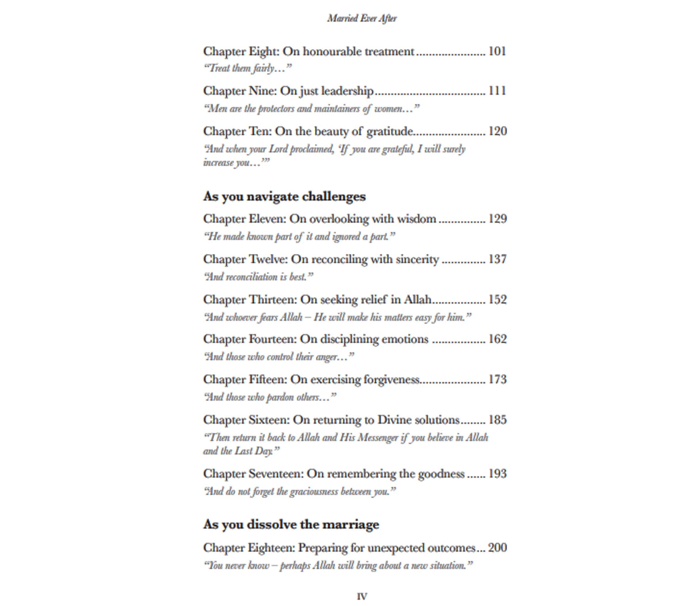 Married Ever After is a guide through the marriage process based on 20 timeless Qur'anic principles, insightful Prophetic examples and contemporary research on maintaining successful relationships. We know all relationships involve struggle, and challenges are an inevitable part of a believer's life. Married Ever After teaches us how to pick the struggles that are worthy, rewarding and lead to the greatest pleasure.