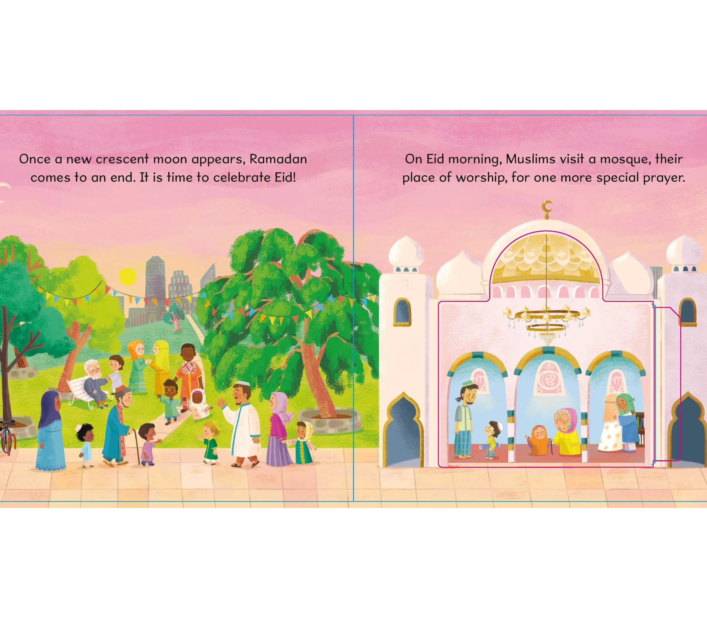 Lift the flaps to reveal the moon, look inside the mosque and open the Eid presents!