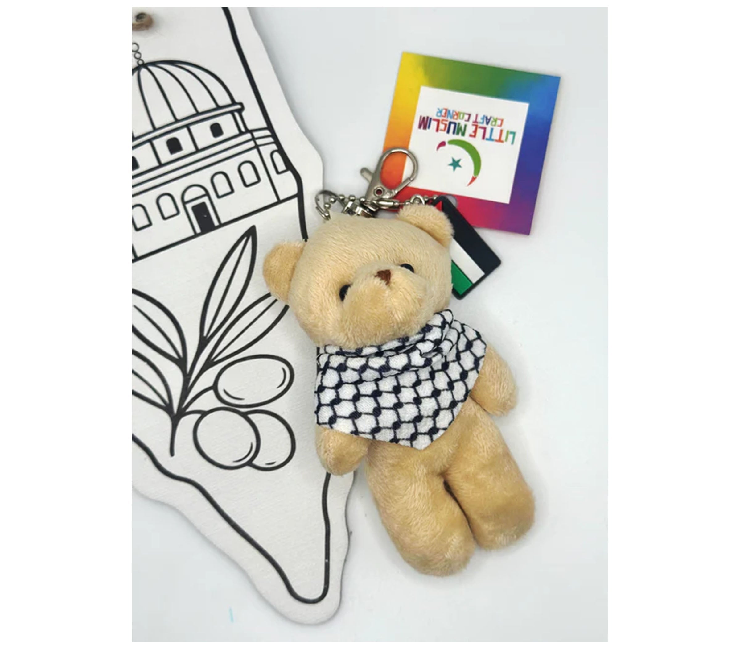 This cute bear dons his keffiyeh proudly and can be placed on backpacks, tote bags, keys and purses.
