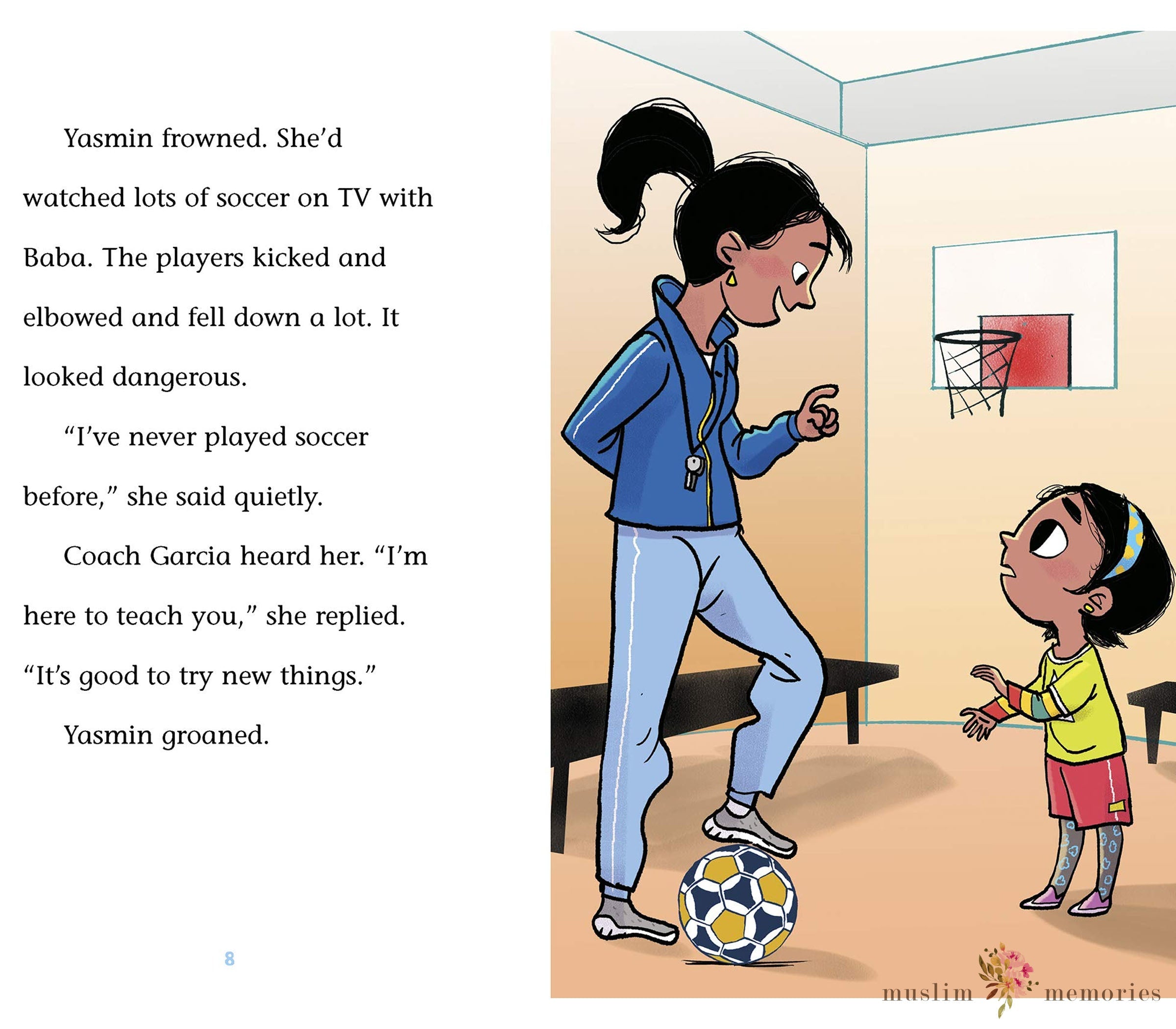 Everyone in Yasmin's gym class is excited to play soccer, except for Yasmin. She's seen the pros play, and it looks scary! When Yasmin is chosen as goalie, will she step up or back out? Courage, Yasmin!
