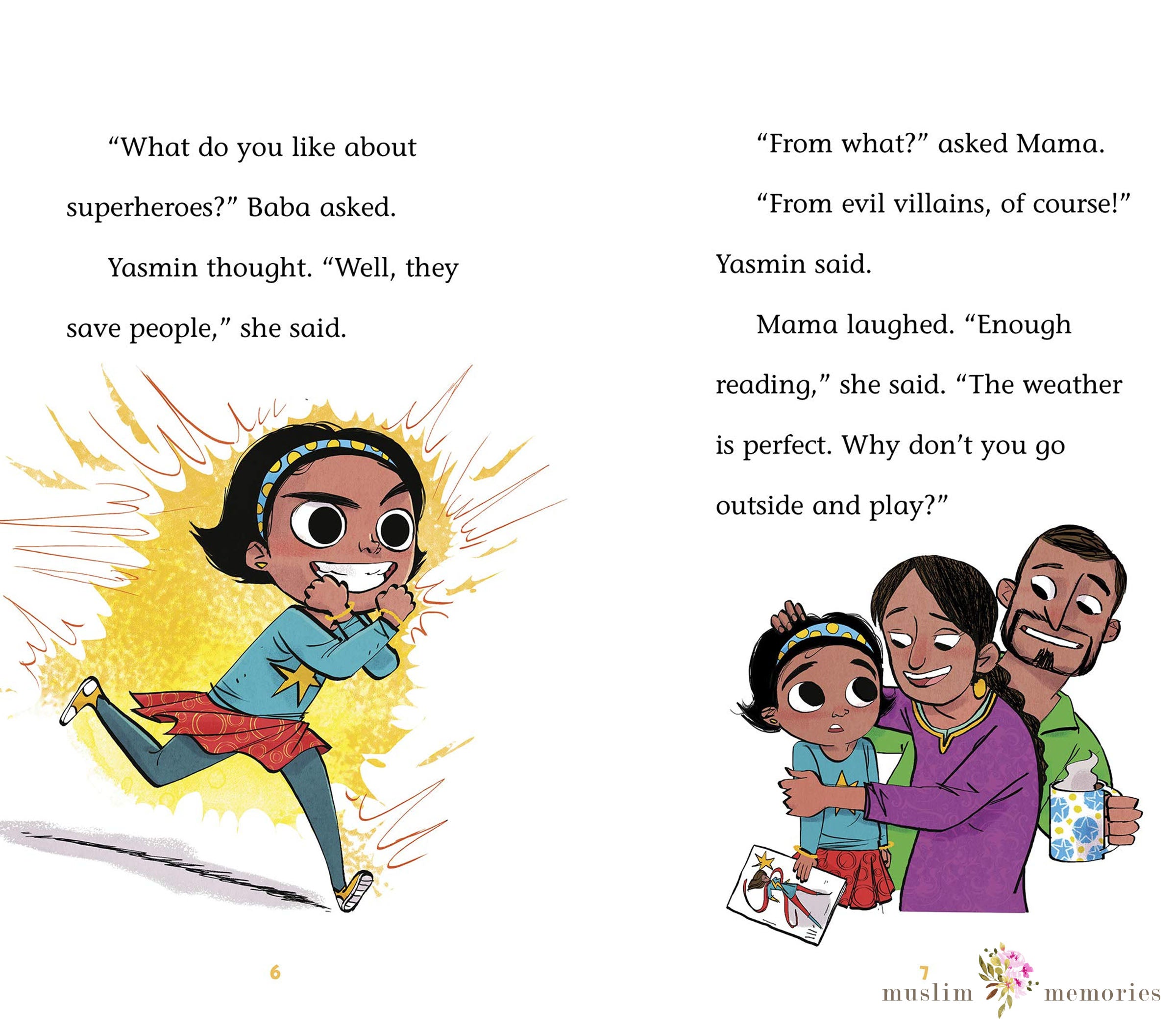 Superhero Yasmin! She's got the cape. She's got the mask. Now she just needs a villain to defeat! While she's looking for one, she meets lots of friends and neighbors who need her help, but no villains. Then Yasmin discovers that she might not need a villain to wield her super powers!