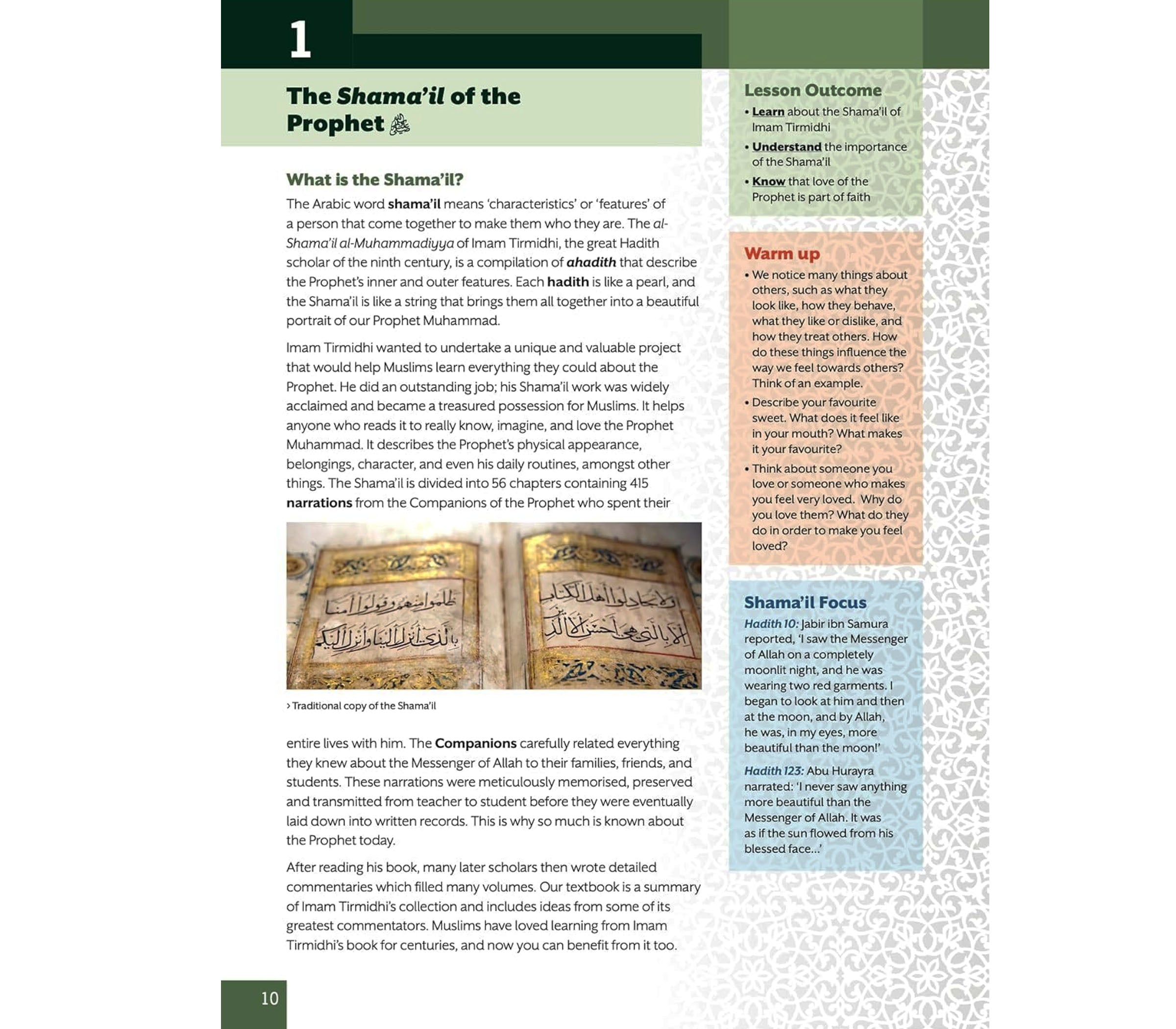• Assessment questions allow students to develop their comprehension and apply critical thinking skills in examining the Shama’il and Sunna of the Prophet